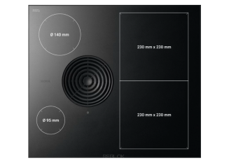 Oba pola z indukcją pełnopowierzchniową po prawej stronie, z których każde ma powierzchnię 230 x 230 mm, mogą tworzyć jedną, dużą powierzchnię o wymiarach 230 x 460 mm za sprawą funkcji Bridge. Dzięki aktywowanej na stałe funkcji rozpoznawania naczynia zostają one połączone automatycznie po ustawieniu odpowiednio dużego naczynia.