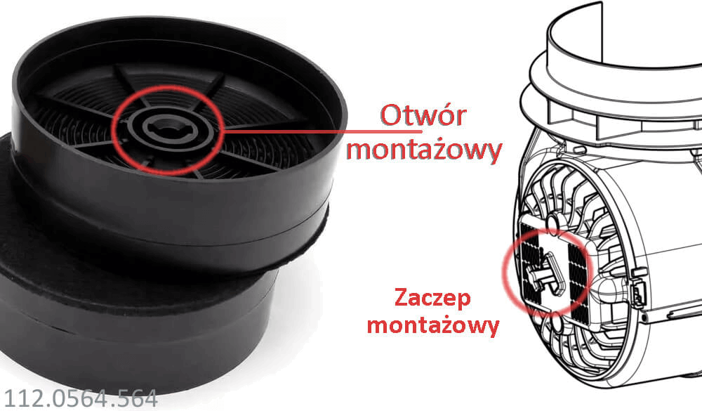 | Typ montażu | na silniku wewnątrz okapu, należy zamontować oba filtry |