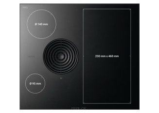 Oba pola z indukcją pełnopowierzchniową po prawej stronie, z których każde ma powierzchnię 230 x 230 mm, mogą tworzyć jedną, dużą powierzchnię o wymiarach 230 x 460 mm za sprawą funkcji Bridge. Dzięki aktywowanej na stałe funkcji rozpoznawania naczynia zostają one połączone automatycznie po ustawieniu odpowiednio dużego naczynia.