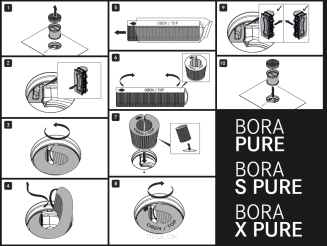 Urządzenia BORA PURE posiadają zintegrowany licznik czasu pracy pochłaniacza - który poinformuje o konieczności wymiany filtra po 150 godzinach użytkowania wyświetlając literę "F" w miejscu ikony wentylatora - od pierwszego użycia filtr utrzymuje skuteczność przez ok. 1 rok