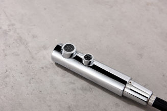 Wyciągana wylewka w baterii DELTA posiada zintegrowany magnes, dzięki czemu chowanie wylewki jest szybkie a mocowanie stabilne.