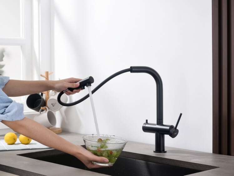 Blue Water DELTA czarny mat - 2 funkcyjna bateria z wyciąganą wylewką