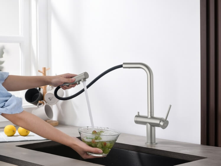 Przefiltrowana woda posiada osobny obwód i nie miesza się z wodą z sieci.