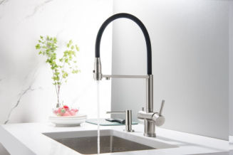 Wyjmowana wylewka w baterii TUSAR posiada zintegrowany magnes, dzięki czemu odkładanie wylewki jest szybkie a mocowanie stabilne. Wylewka posiada przełącznik funkcji prysznica.