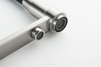 Wyjmowana wylewka w baterii TUSAR posiada zintegrowany magnes, dzięki czemu odkładanie wylewki jest szybkie a mocowanie stabilne. Wylewka posiada przełącznik funkcji prysznica.