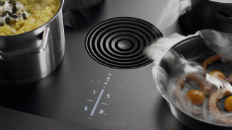 ...nawet przy wysokich poziomach mocy: Powodem jest optymalne prowadzenie powietrza i korzystanie z wyjątkowo cichego wentylatora. Podczas gotowania nie dekoncentrują nas żadne niepożądane hałasy i możemy bez przeszkód kontynuować rozmowy.