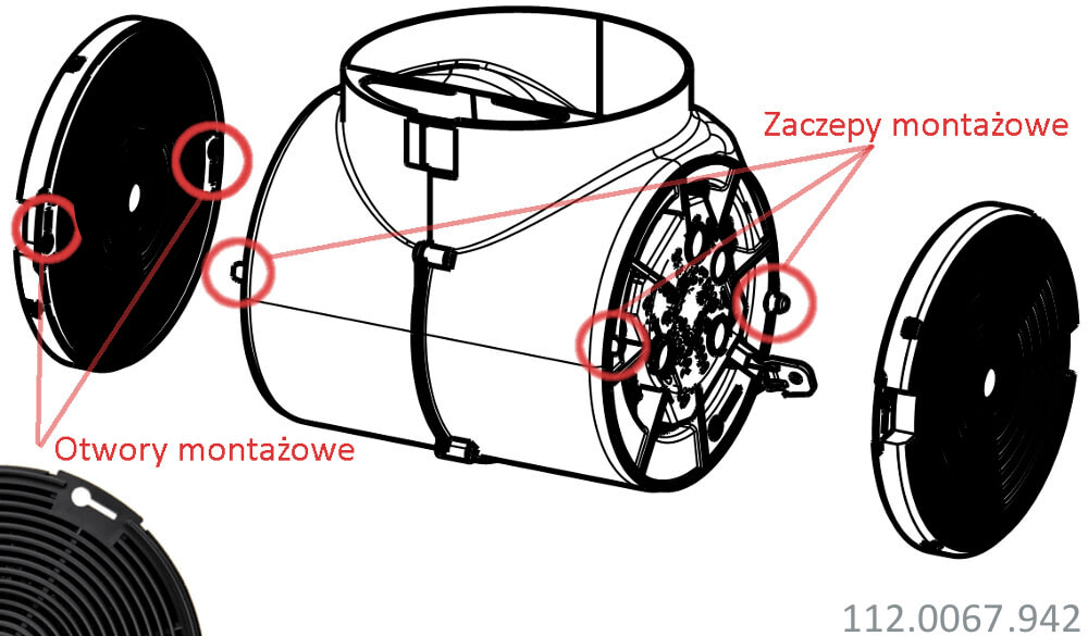 | Typ montażu | na silniku wewnątrz okapu, należy zamontować oba filtry |