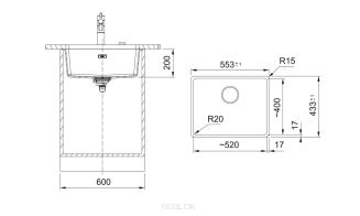 | Wymiar zlewozmywaka | 553x433 mm |