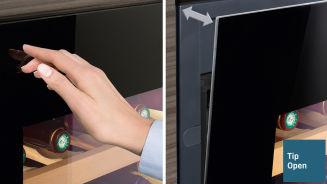 Tip OpenTipOpen to technologia pozwalająca otworzyć drzwi za pomocą delikatnego dotknięcia. Lekkie dotknięcie szklanych drzwi powoduje ich otwarcie na szerokość 7 cm. Jeżeli w ciągu następnych 3 sekund nie dojdzie do pełnego otwarcia urządzenia, wówczas drzwi zamkną się automatycznie. |