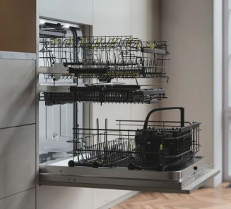 Przemyślana w każdym detalu, górna taca na sztućce i akcesoria kuchenne została umieszczona tuż pod górną częścią zmywarki, maksymalizując przestrzeń i wygodę użytkowania. Dzięki dedykowanemu ramieniu spryskującemu gwarantuje precyzyjne czyszczenie, a jej łatwe wyjmowanie sprawia, że załadunek i rozładunek stają się czystą przyjemnością. Z innowacyjną funkcją Instant Lift, błyskawicznie dopasujesz wysokość tacy do swoich potrzeb, elastyczność i komfort na najwyższym poziomie.