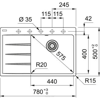 | Dostępne akcesoria dodatkowe | - podkładka dystansująca - korek automatyczny z pokrętłem Grey Line - osłona odpływu ze stal szlachetnej - deska kuchenna z drewna bambusowego - uniwersalna rollmata - przedłużka do syfonu |