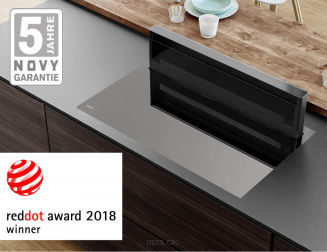 Po zakończonej pracy urządzenie dyskretnie zamyka się w płycie, idealnie wtapiając się w otoczenie. Panorama wprowadza do kuchni nieznaną dotąd jakość i zupełnie nowe rozwiązania. Unikalna konstrukcja sprawia, że jest to pierwszy okap typu downdraft umożliwiający swobodny montaż szeregu szuflad (do głębokości 40 cm) bezpośrednio pod płytą grzejną.